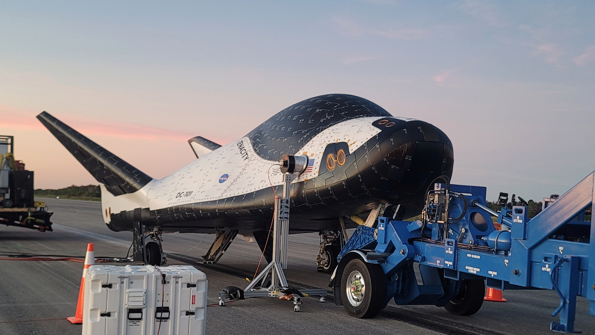 13 NOVEMBRE 2025Dans le cadre de sa campagne d'essais exhaustive, Dream Chaser a subi des tests d'interférences électromagnétiques et de compatibilité électromagnétique (IEM/CEM) au centre de traitement des systèmes spatiaux (SSPF) de la NASA. Ces tests ont permis de vérifier la capacité du vaisseau spatial à fonctionner dans les environnements électromagnétiques prévus lors de différentes missions.  Le vaisseau spatial a également subi des essais de remorquage rigoureux au Centre spatial Kennedy et au centre de lancement et d'atterrissage de Space Florida. Pour cette phase, un camion Freightliner Cascadia, fourni par Daimler Truck North America, a remorqué la navette spatiale à grande vitesse afin de simuler les dynamiques critiques et de valider les paramètres de navigation autonome lors des opérations d'atterrissage sur piste.  De plus, Dream Chaser a démontré avec succès sa capacité à recevoir des données de télémétrie et à distribuer des commandes entre le vaisseau spatial et le centre de contrôle de mission à Louisville, dans le Colorado, via le réseau du système de relais de données et de poursuite par satellite de la NASA. Cette étape cruciale a permis de tester l'aptitude du vaisseau spatial à assurer un contrôle et une commande en temps réel pendant les opérations de vol. La campagne d'essais s'est conclue par une répétition de récupération après atterrissage, qui a démontré la mise en sécurité des systèmes du véhicule et l'accès rapide aux charges utiles sensibles. Ces étapes cruciales étant franchies, nous prévoyons que Dream Chaser entamera sa phase finale de tests acoustiques en décembre 2025. Par la suite, des modifications pour des applications de sécurité nationale seront étudiées et mises en œuvre au Colorado. Ces améliorations viseront à accroître la polyvalence de Dream Chaser et à démontrer sa capacité à répondre à un large éventail d'exigences opérationnelles, notamment celles essentielles à…défense nationale. Le programme Dream Chaser est en bonne voie pour son premier lancement en orbite terrestre basse, prévu au quatrième trimestre 2026, dans le cadre d'une mission de démonstration au titre du contrat CRS-2 avec un atterrissage sur la piste de la base spatiale de Vandenberg. « Chaque étape franchie témoigne de la résilience, de l'innovation et du dévouement de l'équipe de Sierra Space, et représente un pas de plus vers le succès de Dream Chaser en tant que vaisseau spatial polyvalent et réutilisable », a déclaré Fatih Ozmen, président exécutif de Sierra Space. « Nous sommes ravis de voir Dream Chaser progresser régulièrement vers son vol inaugural, qui contribuera à soutenir les priorités spatiales les plus urgentes du pays. » Sierra Space s'engage à faire progresser l'avenir du transport spatial, de l'exploration et de la défense spatiale, en fournissant des solutions innovantes qui protègent la sécurité nationale et garantissent la liberté des opérations au-delà de la Terre. https://www.sierraspace.com/press-releases/sierra-spaces-dream-chaser-spaceplane-successfully-completes-critical-pre-flight-milestones/