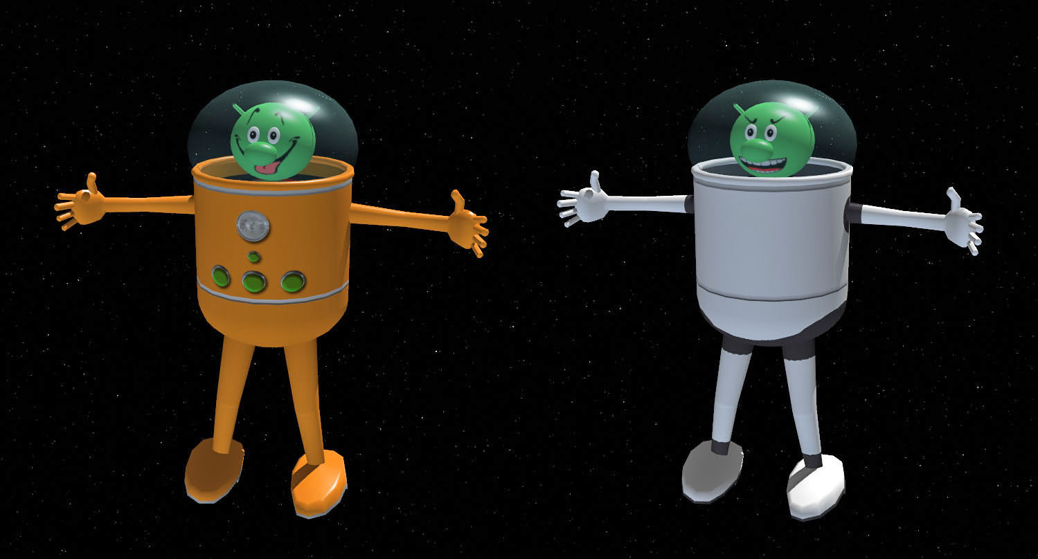 Alors ... Tu as essayé de faire un système de skins ? Tu appuies sur une touche, et hop ! la tête et le scaphandre changent...