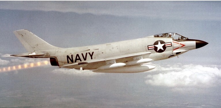 F8 CRUSADER.PILOTE D’ESSAIEn janvier 1958, Lovell commence une formation de pilote d'essai de six mois sur la base aéronavale de Patuxent où il terminera major de sa promotion ; il y rencontrera de futurs astronautes qui seront sélectionnés pour devenir les sept premiers du programme Mercury auquel James Lovell ne sera pas sélectionné suite à un problème de santé.